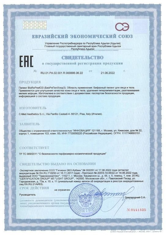 Cертификат на дистрибьюцию препаратов Биорепил:
