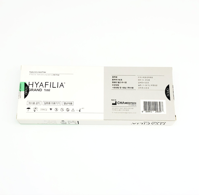 Средство Хиафилия Гранд является самым плотным в линейке бренда, используемый в контурной пластике для коррекции объемов и формы в области носа, висков, подбородка, щек и скул. Также препарат отлично справляется с возрастными дефектами кожи лица, подходит пациентам от 25 лет и старше. Молекулы гиалуроновой кислоты в составе препарата связаны в количестве 85% по технологии сшивания – BDDE, оставшиеся 15% свободные. Частицы гиалурона имеют крупные размеры, благодаря этому гель обладает высокой густотой и пластичностью, что позволяет правильно распределяться в тканях дермы. Мгновенный эффект волюмизации и оздоровления кожи после применения средства. Hyafilia Grand можно купить у нас в онлайн-магазине оптом и в розницу с доставкой по России.