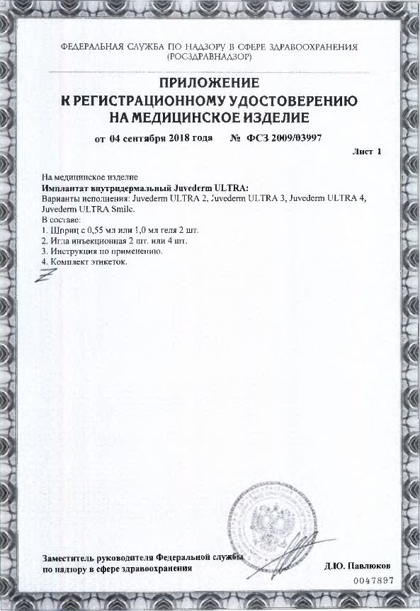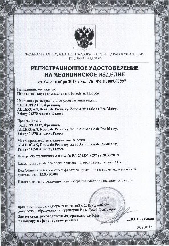 Cертификаты на дистрибьюцию Ювидерм Ультра 2: