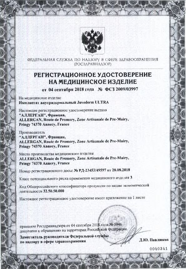 Cертификаты на дистрибьюцию Ювидерм Ультра 4: