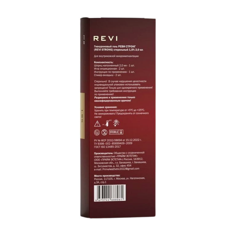 Гель Revi Strong 2 ml используется инъекционным методом, вводится тонкими иглами 30G в средние и глубокие слои кожи. Инъекция проходит линейно-ретроградным или мультипунктурным методом с уколами объемом 0,02-0,05 мл, с рекомендуемым расстоянием 10 мм. Курс повторяется раз в пол года.