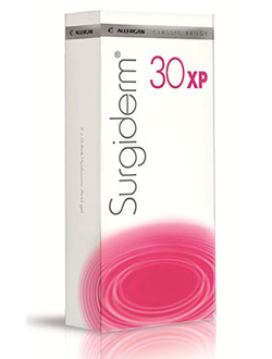 Surgiderm 24XP — гель большей плотности (24мг/мл) по сравнению с Surgiderm 18. Такая плотность позволяет использовать его для коррекции средних и значительных морщин вокруг рта, в области носогубных складок, межбровных морщин. Также, данный препарат можно эффективно использовать для контурной пластики губ. Аббревиатура XP означает прологированный эффект. Surgiderm 24XP используется для контурной пластики, коррекции морщин и увеличения и изменения формы и объема губ.